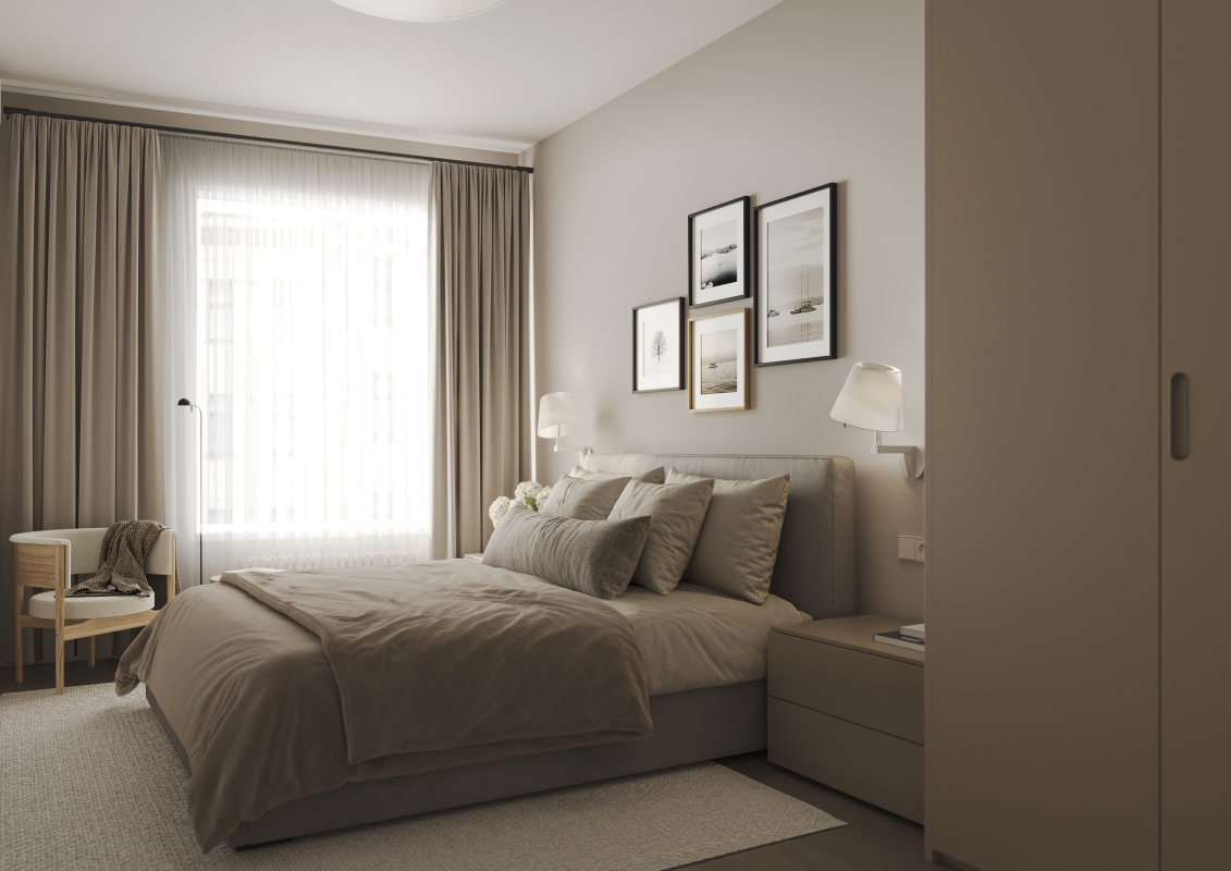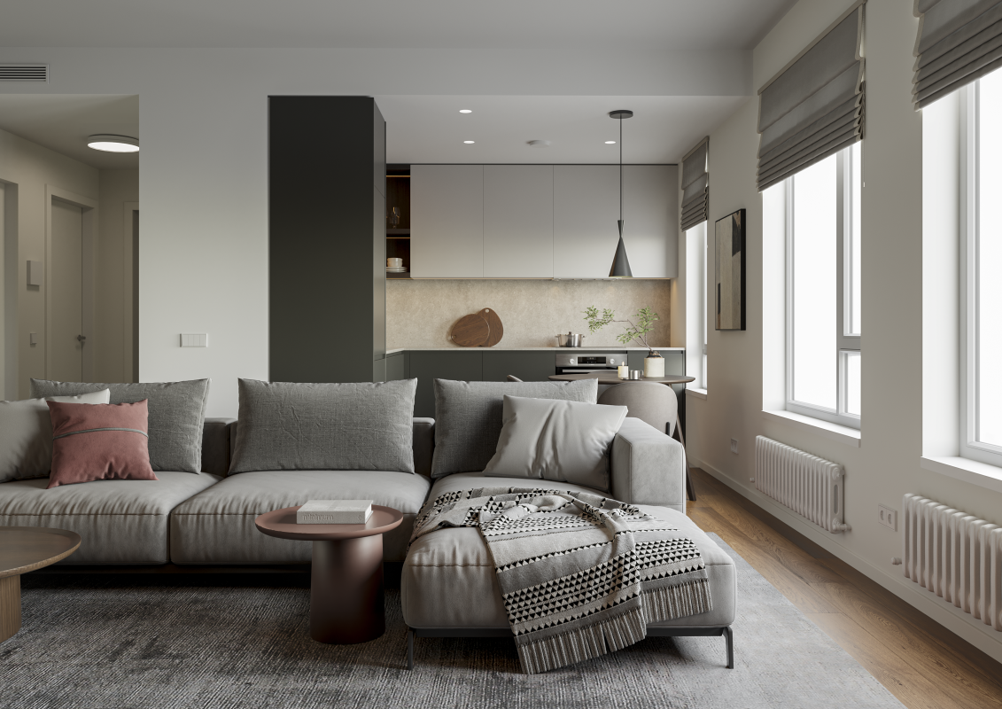 CENTRUS предлагает квартиры с полной, высококачественной отделкой. Интерьеры выполнены в туманно-белом, песочно-бежевом или каменно-сером оформлении.